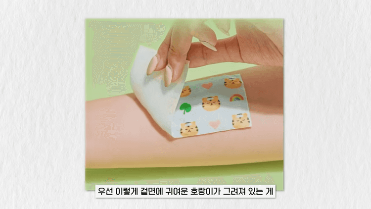겉면에 귀여운 호랑이가 그려져 있는 게 포인트인 제품입니다. 제품을 붙여보니 아주 차갑지는 않고, 적당한 시원함이 느껴집니다. 다만 접착력이 강한 편은 아니라 팔이나 다리처럼 굴곡진 부위에 붙이면 금방 떨어집니다. 이마에 붙였을 때는 유지력이 좋았습니다.