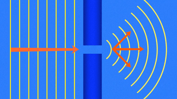 파동이 전파될 때는 매질의 각 점이 새로운 파원처럼 작용해 구면파 형태로 퍼져 나갑니다. 이때 장애물을 만나면 그 가장자리에서 새로운 파동처럼 장애물 뒤쪽으로 전파됩니다. 이것이 바로 회절 현상입니다.