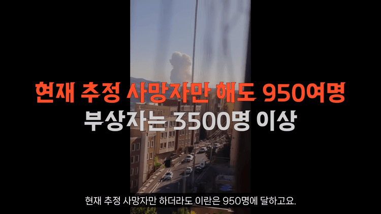 이렇다 보니 이란의 피해는 배가 되었습니다. 현재 추정 사망자만 하더라도 이란은 950명에 달하고, 부상자는 3,500명 이상인 것으로 추정됩니다. 각종 시설이나 인물들의 피해까지 생각해 본다면 이란은 너무 큰 피해를 입었습니다.