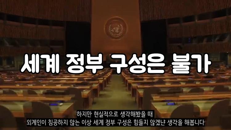 이걸 막으려면 중앙집권 체제가 강화되어야 하는데, 현재 세계 추세를 보면 중앙집권 체제 강화보다는 풀뿌리 민주주의와 민주주의 확대가 주를 이루고 있습니다. 물론 몇십 년 뒤 미래이기 때문에 이 추세가 어떻게 될지는 잘 모릅니다. 하지만 이 상황이 지속된다면 세계 정부 구성은 힘들 겁니다.