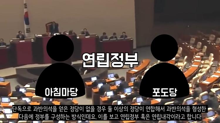 이렇게 되면 연립내각이 구성됩니다. 단독으로 과반 의석을 얻은 정당이 없을 경우 둘 이상의 정당이 연합해서 과반 의석을 형성한 다음에 정부를 구성하는 방식입니다. 이를 연립정부 혹은 연립내각이라고 합니다. 연립내각에선 다수의 정당이 협의해서 장관진을 임명하는 식으로 나라를 운영합니다.