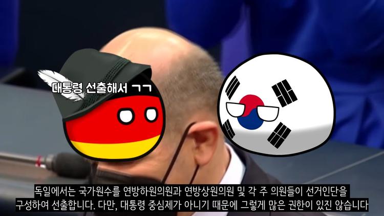 독일은 대통령중심제가 아니기 때문에 대통령을 선출해도 그렇게 많은 권한이 있지는 않습니다. 영국 국왕과 유사한 상징적인 존재라고 생각하면 이해가 쉽습니다.