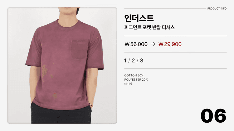 ✅ 인더스트 - 피그먼트 포켓 반팔 티셔츠