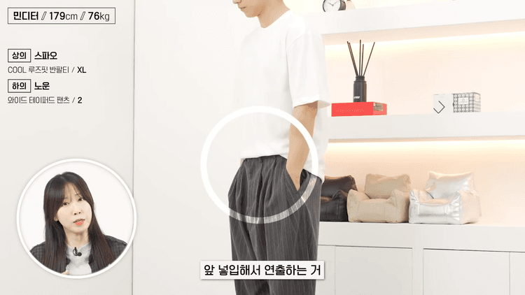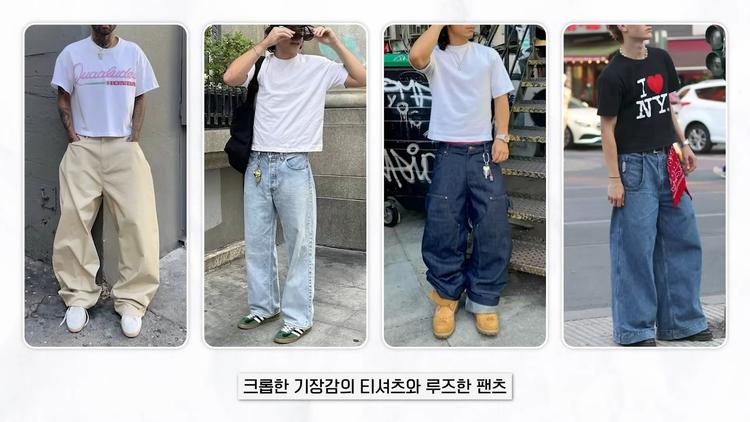 - 크롭 기장 티셔츠와 루즈한 팬츠를 매칭하여 코디