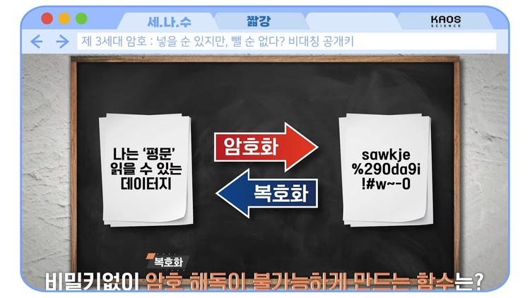 1970년대에 인터넷 통신이 발달하기 시작하면서 이런 요구 조건이 생겼습니다. 처음에는 풀 수 없는 문제라고 생각했지만, 수학자들이 이 문제에 도전하면서 새로운 해결책을 만들어냈습니다. 바로 공개키 암호인 3세대 암호입니다.