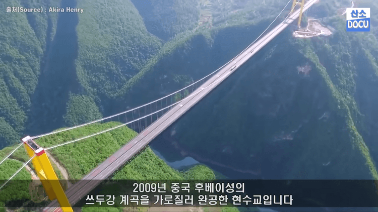중국의 시두강 다리는 2009년 중국 후베이성의 시두강 계곡을 가로질러 완공한 현수교입니다. 건설 비용은 약 7억 2천만 위안, 한화로는 1334억 원의 비용이 들었습니다.