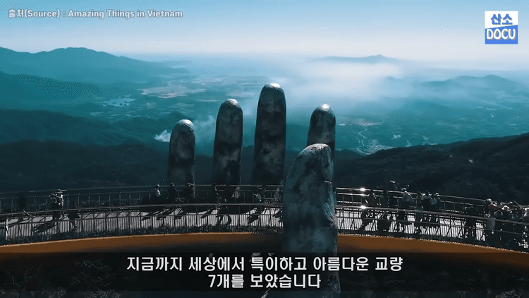 베트남의 골든 브릿지는 우리가 많이 알고 있는 미국 샌프란시스코의 금문교가 아닙니다. 베트남 다낭에 위치한 리조트에 있는 보행자용 다리입니다.