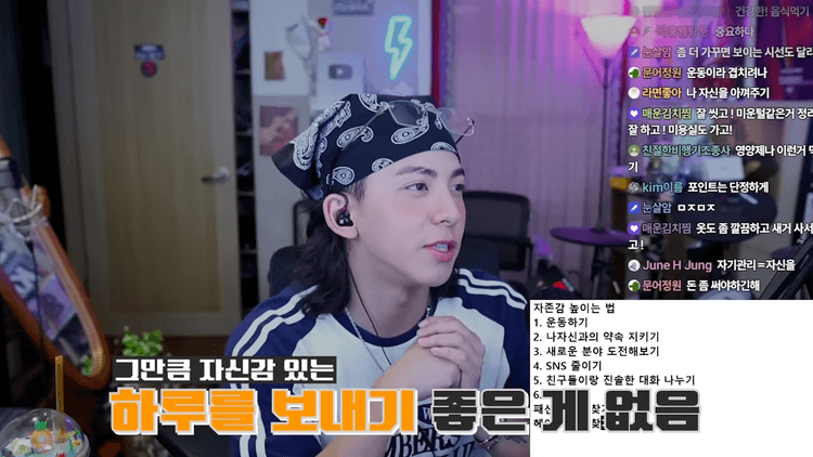 그러니 본인이 좋아하는 것이나 잘하는 것을 만들어두는 것이 중요합니다. 내가 취업 준비하고 있다면 취업 준비하고 있다고 말하고, 책 읽는 것을 좋아한다면 ‘요즘 책 읽는 게 재미있더라’ 이렇게 말해보세요. 내가 잘 지낸다고 대답할 수 있는 상태를 만들어두는 게 자존감이 높은 상태입니다.