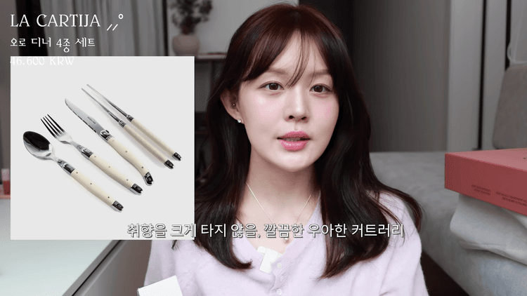 LA CARTIJA의 제품을 추천하는 이유는 선물했을 때 보이는 비주얼 자체가 굉장히 고급스럽고 취향을 크게 타지 않기 때문입니다. 나이프, 포크, 수저, 젓가락이 포함된 구성으로, 가격대가 내 돈 주고 사기에는 아깝지만 선물하기에는 부담스럽지 않으면서도 비주얼이 빈티지하고 고급스러운 느낌을 줍니다.