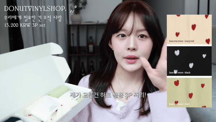 가격대가 부담스럽지 않으면서 실용성도 좋고 받는 사람도 기분이 좋은 선물로 양말 세트를 추천합니다. 하트 양말 3종 구성으로, 아이보리와 레드 조합의 하트 패턴이 정말 귀엽습니다.