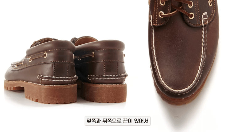핀터레스트에서 진짜 많이 봤어요. 팀버랜드의 클래식 3아이 보트슈즈입니다. 옆쪽과 뒤쪽으로 끈이 있어서 포인트를 더해주고, 사진에서 멋진 오빠들이 코디한 것만 봐도 신발이 딱 눈에 띄더라구요. 팀버랜드 클래식이니까 오래 신을 수 있어서 한번 투자해도 될 것 같아요.