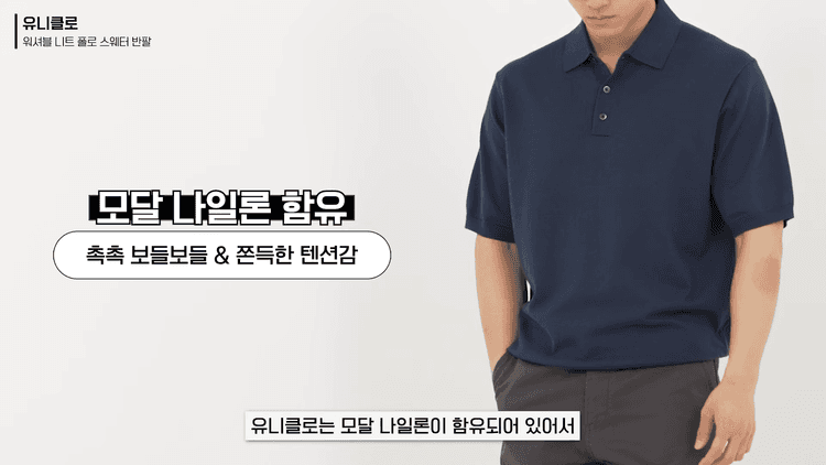 유니클로는 모달 나일론이 함유되어 있어서 보들보들하면서 쫀득한 텐션감이 느껴지는 느낌으로 몸을 좀 더 부드럽게 감싸주는 느낌입니다. 무신사 스탠다드는 코튼 100%라 좀 더 탄탄하게 몸을 잡아주는 느낌이어서 체형 보완을 원한다면 무신사 스탠다드 쪽이 더 잘 맞을 것 같습니다.