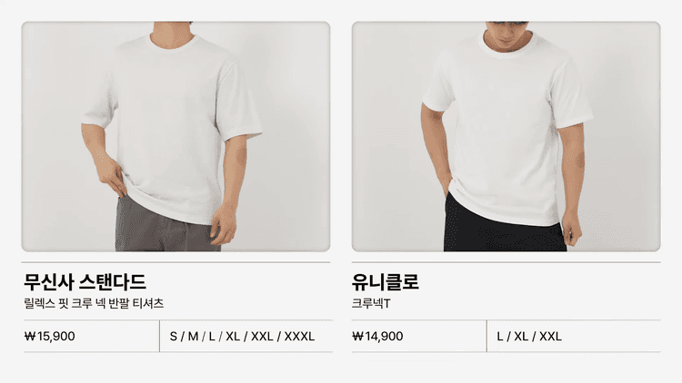 스포티한 제품이 좋으면 무신사, 미니멀한 디자인이 좋으면 유니클로