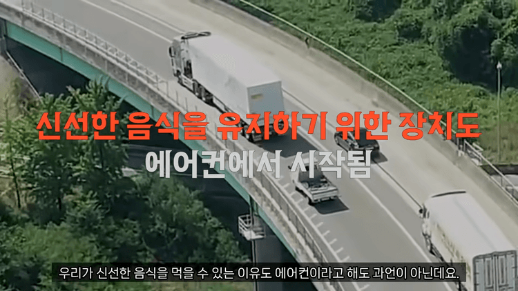 우리가 신선한 음식을 먹을 수 있는 이유도 에어컨이라고 해도 과언이 아닙니다. 적정 온도를 유지하는 것도 다 에어컨의 힘 덕분입니다. 물류 트럭에 설치된 에어컨을 통해서 적정 온도를 계속 유지할 수 있었기에, 우리는 전 세계의 식품을 신선한 상태로 먹을 수 있게 되었습니다. 이는 전 세계의 식문화를 바꾸게 됐습니다.