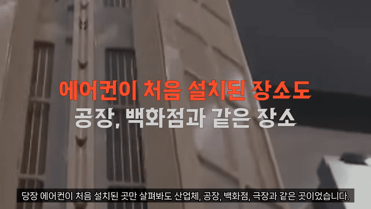 당장 에어컨이 처음 설치된 곳만 살펴봐도 산업체, 공장, 백화점, 극장과 같은 곳이었습니다. 이게 무엇을 의미하냐면 냉방도 되는데 동시에 쾌적한 실내 환경을 만들 수 있게 도와줄 수 있다는 것입니다.