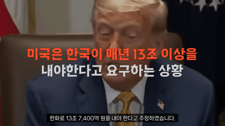 트럼프 미국 대통령은 현지 시각으로 7월 8일, 한국이 부유한 나라라고 언급하면서 자국 군사 방어를 위해 스스로 비용을 부담해야 하고, 주한미군 주둔 비용도 더 많이 내야 한다고 주장했습니다. 이날 트럼프 대통령은 백악관에서 열린 내각 회의에서 기자들 앞에서 한국 방위비 인상에 대한 촉구를 이어나갔습니다.