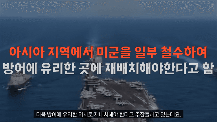 미국은 주한미군들을 괌 등 다른 지역으로 배치해서 유사시에 바로 대만 방어에 투입할 수 있게 해야 한다고 주장했습니다. 더 충격적인 것은 주한미군의 규모를 더 축소해서 대부분의 지상군도 다 철수시키는 방향으로 가야 한다고 주장한 점입니다.