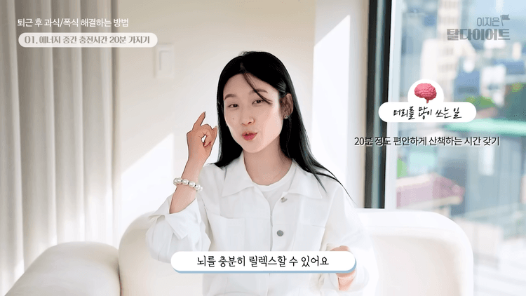 이 글을 보시는 모든 분들이 가정에서 나도 행복할 수 있는 나만의 자기 관리 방법을 찾으시길 바랍니다. 퇴근 후 폭식은 단순한 의지력 문제가 아닌 에너지 고갈과 스트레스 누적의 자연스러운 결과입니다. 20분의 중간 충전 시간과 올바른 식사 환경을 만드는 것만으로도 충분히 개선할 수 있으니, 내일부터 이 두 가지 방법을 적용해 보시기 바랍니다.