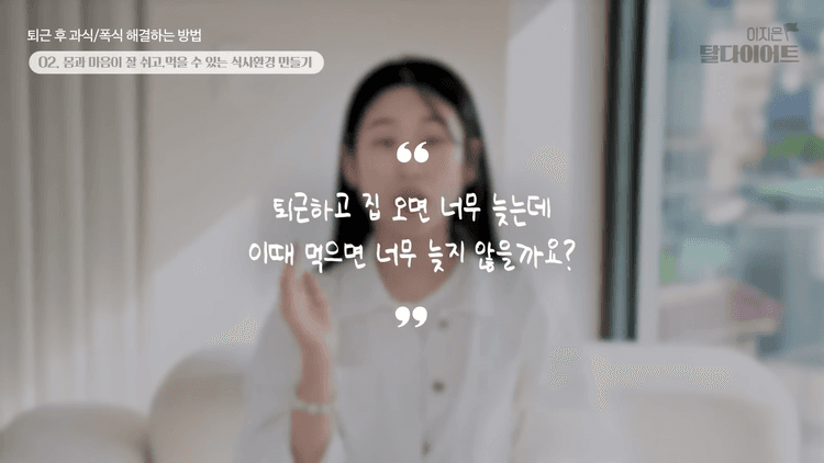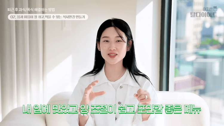 아무래도 퇴근 후 폭식, 저녁 과식 패턴을 오래 가지고 계신 분이라면 이미 저녁 시간에 과식하는 습관이 고착되어 있기 때문에 갑자기 이 시간에 그냥 소식해야지, 굶어야지라는 다짐만으론 해당 습관을 바꾸기는 어렵습니다. 그래서 이 시간대에는 갑자기 뭔가 엄청난 변화를 만들기보다 내 입에 맛있고 양 조절도 쉽고 포만감도 좋은 메뉴로 저녁 식사를 챙겨주는 것이 좋습니다.