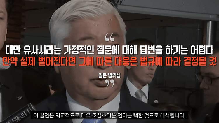 이 발언은 외교적으로 매우 조심스러운 언어를 택한 것입니다. 일본은 평화헌법 9조에 따라 자위대의 전투적 개입에 법적 제약이 크며 다른 국가와 공동 전쟁을 수행하려면 의회 승인과 헌법 해석 조정이라는 정치적 과정을 수반해야 하기 때문입니다.