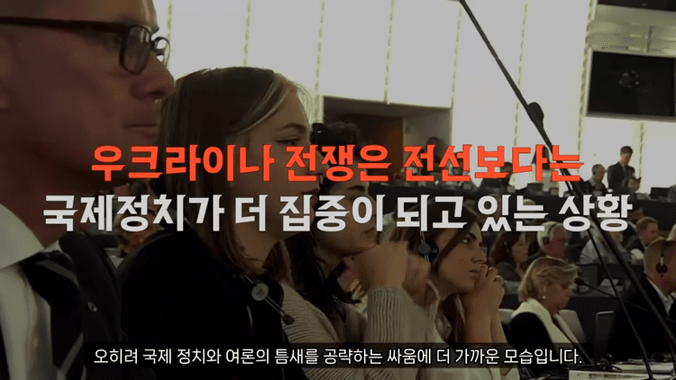 지금 이 전쟁은 전선에서의 전투보다 오히려 국제 정치와 민심의 틈새를 공략하는 여론전에 더 가까운 모습입니다. 푸틴 대통령이 특히 주목하고 있는 것은 서방의 피로감입니다. 우크라이나 전쟁이 장기화되면서 미국과 유럽은 경제적, 정치적, 심리적 부담을 갈수록 크게 느끼고 있습니다.