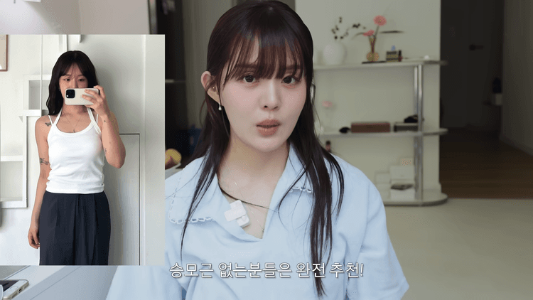 컴포트랩의 브라탑도 정말 좋습니다. 캡이 내장된 민소매 제품으로, 보통 캡 내장 민소매들은 옷에 딱 달려있어서 캡이 이동하기도 하고 뾰족한 느낌이 드는데, 이 제품은 옷과 따로 분리되어 캡이 내장되어 있습니다. 입었을 때 스포츠 브라처럼 꽉 잡아주는 느낌이 굉장히 마음에 들었습니다. 다만 호불호가 갈릴 수 있는데, 텐션이 굉장히 강해서 그냥 이너를 입은 느낌이 아니라 속옷과 나시가 합쳐진 느낌입니다. 하나로 끝내고 싶을 때는 괜찮지만, 스포츠 브라 같다는 느낌이 많이 듭니다.