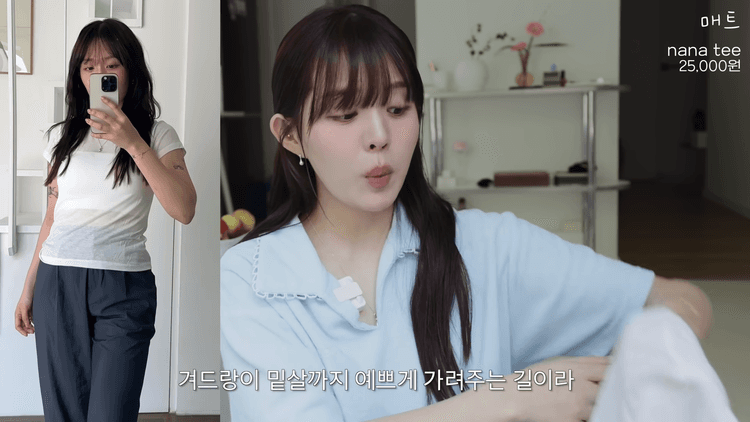 지난번에 극찬했던 매트 티셔츠는 핏이 너무 예쁜 제품입니다. 차르르 떨어지고 시원한 텐셀감의 쫀쫀함을 갖춘 완전 기본템으로, 4계절 모두 잘 입을 수 있습니다. 겨울에는 이너로도 입을 수 있고, 아이보리 컬러 같은 경우에는 투명감이 있어서 요즘 핫한 레이어드 패션에도 활용할 수 있습니다.