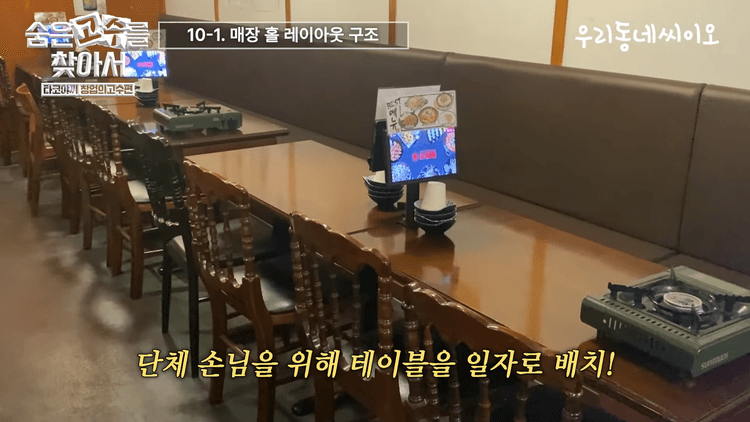 단체 손님을 받을 수 있도록 테이블을 일자로 배열하고, 가운데에도 빈 공간 없이 테이블을 채우는 것이 좋습니다. 사람들이 북적해야 더 많은 고객이 찾아오기 때문입니다. 15~20평 매장에 테이블 10개에서 15개 사이를 배치하는 것을 가장 추천합니다.