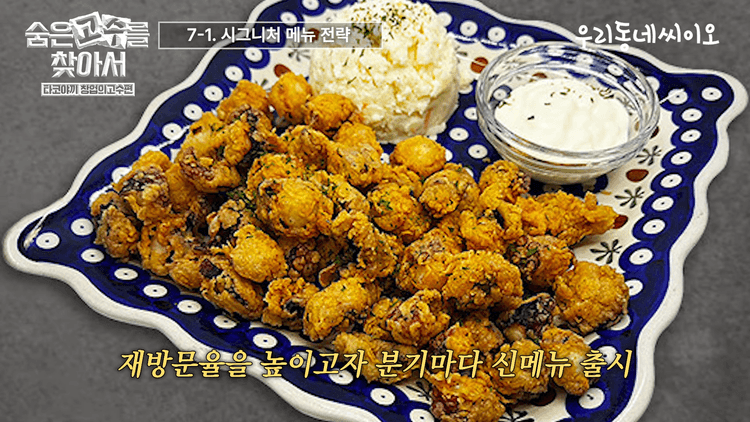 고객 유치를 위해 분기마다 신메뉴를 출시해 고객들이 매장에 질리지 않도록 합니다. 주메뉴가 80%, 사이드 메뉴가 20% 정도의 비율로 구성해 테이블 단가를 높이는 것이 좋습니다. 처음부터 다양한 메뉴를 준비하기보다는 퀄리티 있는 음식만 선별해서 시작하는 것이 중요합니다. 전문성 없는 완제품을 사용하면 그 음식을 경험한 고객은 다시 매장을 찾지 않기 때문입니다.