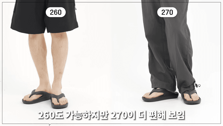 6가지 컬러웨이로 출시되는데, 라이트 블루와 라이트 핑크는 사이즈 제한이 있습니다. 무난하게 신을 컬러로는 블랙과 크림을 추천드립니다. 생각보다 여유롭게 사이즈가 나온 편이기 때문에 정 사이즈를 추천드리지만, 5단위로 신으시는 분들은 발등 발볼이 일반적이시면 사이즈다운, 발볼 발등이 있으시다면 사이즈 업을 추천드립니다. 비 올 때만 신으라는 것이 아니라 그냥 쪼리로 신어줘도 엄청 깔끔한 스타일이라 깔끔한 무드에도 캐주얼 무드에도 예쁘게 어울립니다.