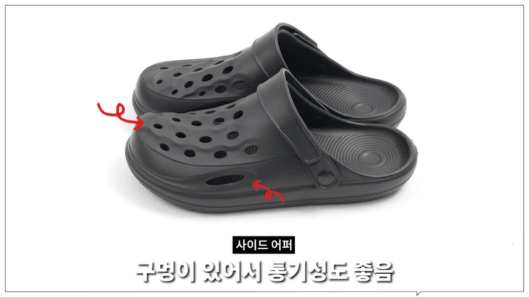 마지막 추천 제품은 플로우 리커버리 클로그입니다. 여름에 물놀이나 바닷가에 가거나 장마 시즌에도 활용하기 좋은 신발입니다. 벨크로 스트랩이 있어서 내 발에 맞춰서 딱 신어주면 쉽게 벗겨질 일도 없습니다. 마찬가지로 EVA 소재를 활용해서 가볍고 착화감이 좋으며 오염에도 강하고 빨리 마릅니다. 사이드 어퍼에 구멍들이 있어서 통기성도 좋고 물도 빠집니다. 물놀이 신발로 강가나 바닷가, 수영장에 신고 들어갔다 나와도 됩니다.