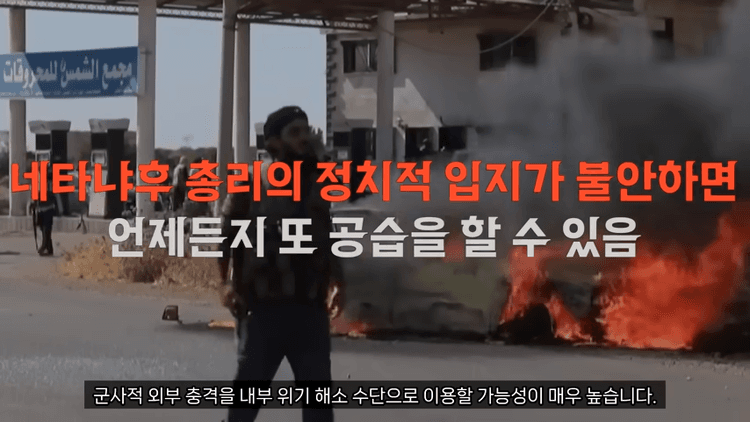 향후 네타냐후 총리의 정치 위기가 지속된다면, 추가 공습이나 군사 도발 가능성 존재