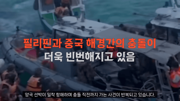 실제로 최근 필리핀 근해에서의 중국 해경과 필리핀 해군의 물리적 충돌 사례가 빈번해지고 있고, 양국 선박이 밀착 항해하며 충돌 직전까지 가는 사건들이 반복되고 있습니다. 중국은 도발 행위라 비난하고 있고, 필리핀은 정당한 해상주권 수호 활동이라며 반박하며 상호 비난의 수위도 높아지고 있습니다.