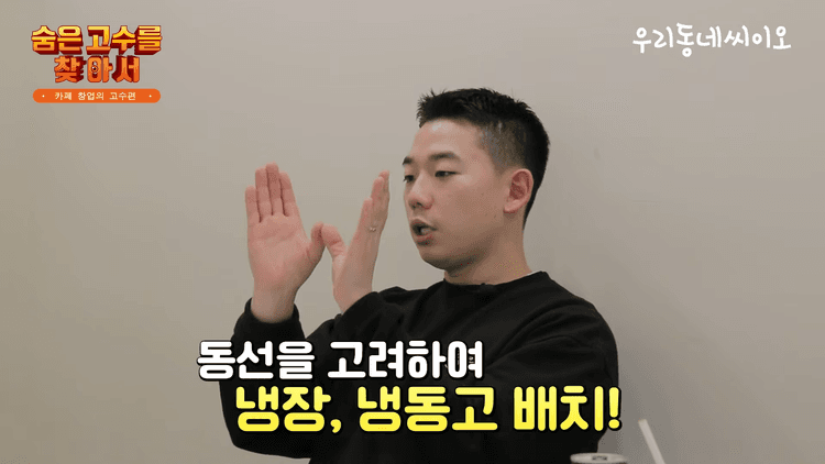 많은 사람들이 실수하는 게 창고를 안 빼는 것입니다. 카페가 생각 이상으로 정말 필요한 게 여분의 재료들을 넣을 수 있는 창고 공간이 필요합니다. 근데 이거를 굉장히 무시하고 홀을 더 빼는데, 창고 공간이 없으면 오히려 효율이 더 떨어져서 매출이 안 나올 수가 있습니다.