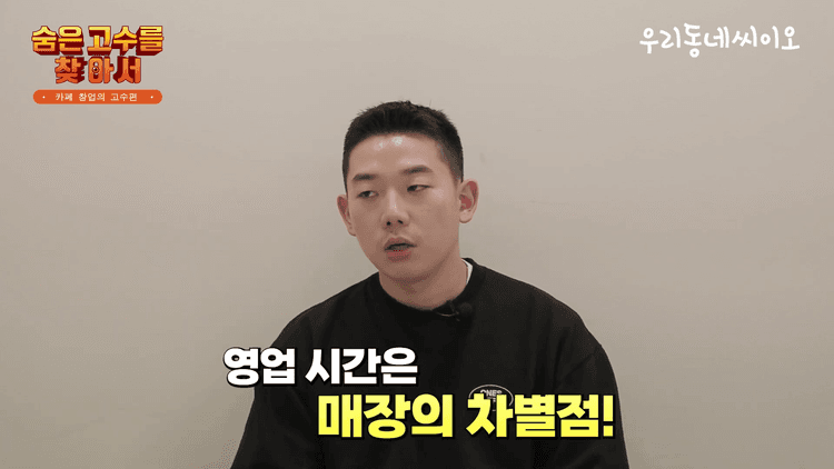 영업 시간은 차별점 중에 하나입니다. 예를 들어 주변에 10시에 다 닫는데 우리 매장이 11시까지 하면, 당연히 11시까지 하는 매장으로 가게 됩니다. 주변에 있는 시간대를 잘 체크하는 게 굉장히 중요한 부분입니다.