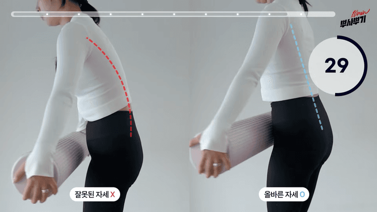 폼롤러를 잡은 상태에서 좌우로 이동