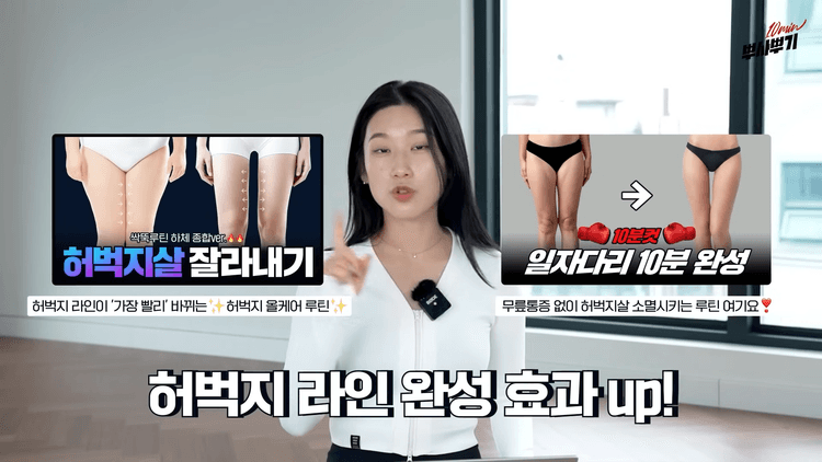 5가지 동작을 통해 울퉁불퉁한 다리의 디테일한 라인 교정 운동을 선행한 뒤, 바로 이어서 5가지 동작을 통해 하체 전체 지방을 한 번에 불태울 예정입니다. 한 세트만으로도 다리 라인이 바뀌고 허벅지 둘레가 줄어드는 이번 루틴은 10분 동안 딱 10가지 동작으로 로망의 일자 다리를 완성하는 하체 전체 지방 소멸 프로그램입니다.
