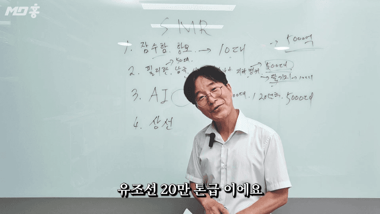 현재 SMR 한 대 가격이 5천억원이지만, 20년 후 대중화되어 공장에서 대량생산되면 가격이 10분의 1인 500억원까지 떨어질 수 있습니다. 그렇게 되면 5만 톤 이상의 상업용 배는 무조건 SMR을 사용하는 것이 경제적입니다. 현재 전 세계에 5만 톤 이상의 상업용 선박이 약 1만대 있어, 이것만으로도 엄청난 수요가 예상됩니다.