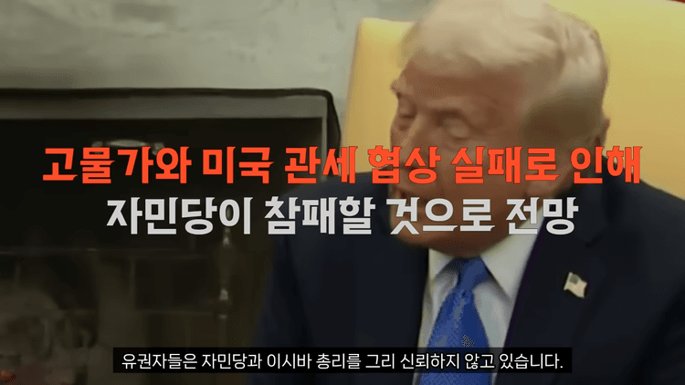하지만 앞서 말했듯이 이시바 총리 지지율은 20.8%로, 낮아도 너무 낮습니다. 실제로 자민당이 목표를 달성하는 것은 어려워 보입니다. 고물가로 인해서 민심도 크게 악화되었을 뿐만 아니라 미국과의 관세 협상에서도 버릇없다는 말이나 듣고 왔습니다.
