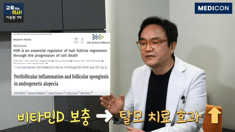 비타민 D는 탈모 환자에게 공통적으로 부족하며, 보충 시 항염 및 면역 조절로 탈모 개선 효과가 큼