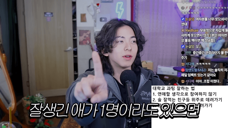 근데 잘생긴 사람이 한 명이라도 있으면 여자 4명이 그 잘생긴 한 명을 위해서라도 남아있어요. 잘생긴 사람이랑 술 먹고 재밌어요. 그렇게 자리를 지키고 있으면 점점 다른 3명도 재미있게 느껴지는 거예요. 좀 취한 뒤에는 "그런데 얘도 귀엽네. 얘도 웃기고 나름 매력 있어" 이렇게 됩니다. 그러니까 외모 담당 1명을 등대지기로 둬야, 나머지 친구들도 그 시간 동안 매력을 보여줄 수 있는 겁니다.