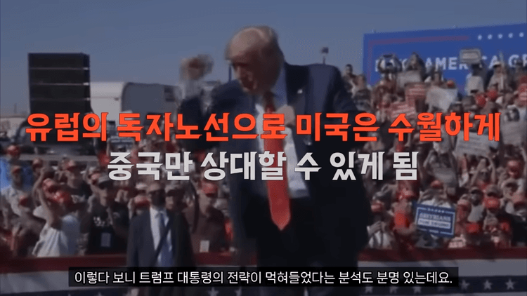 미국으로서는 중국과 러시아를 동시에 상대해야 하는 입장이라 벅찰 수밖에 없습니다. 그런데 유럽이 스스로 방어하겠다고 나섰으니, 유럽에서 전쟁이 나면 미국은 한숨 돌리고 중국만 상대할 수 있게 됩니다. 그렇다 보니 트럼프 대통령의 전략이 먹혀들었다는 분석도 분명히 있습니다.