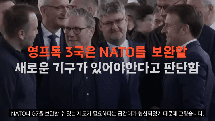 영국, 프랑스, 독일이 나토가 있는데도 불구하고 또 다른 동맹을 만드는 이유는 간단합니다. 이 세 나라 사이에서 나토나 G7을 보완할 수 있는 제도가 필요하다는 공감대가 형성되었기 때문입니다.