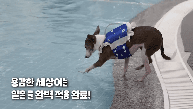 세상이는 처음엔 수영에 대한 두려움이 있었지만, 전문가의 도움으로 천천히 적응해가며 자신감을 키웠습니다. 특히 슬개골 탈구 초기 강아지에게 효과적인 운동으로, 수영은 엉덩이와 뒷다리 근육 발달에 도움을 줍니다.