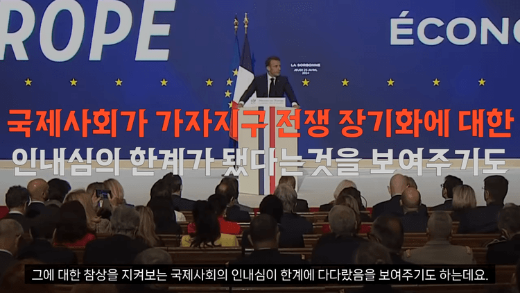 프랑스가 이번에 내린 결단은 가자지구 전쟁 장기화와 그에 대한 참상을 지켜보는 국제사회의 인내심이 한계에 다다랐음을 보여줍니다. 물론 이 전쟁이 하마스의 테러로 인해서 시작되었습니다. 하지만 이를 감안해도 이스라엘군의 행동은 도를 넘었다는 것이 국제사회의 반응입니다.