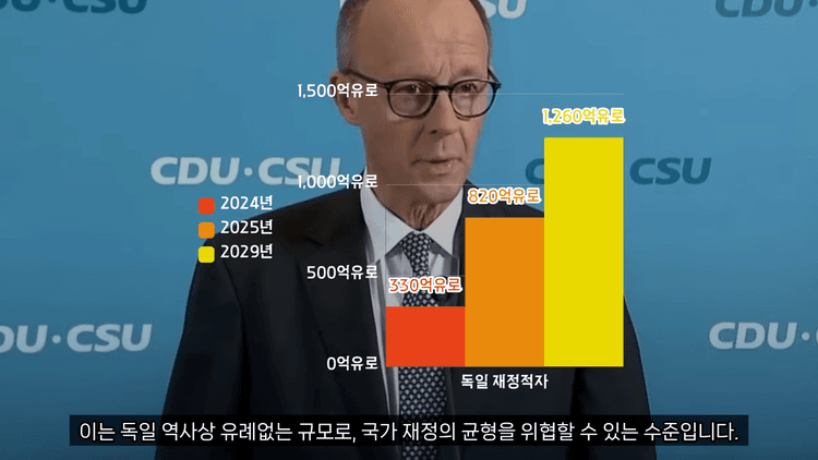 특히 지금과 같은 속도로 군사력 투자가 이어질 경우 2029년에는 재정 적자가 1260억 유로(한화로 약 203조 원)까지 확대될 것이라는 분석도 나오고 있습니다. 이는 독일 역사상 유례없는 규모로, 국가 재정의 균형을 위협할 수 있는 수준입니다.
