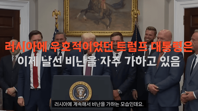 트럼프 대통령은 러시아가 전쟁을 계속할수록, 이전에는 볼 수 없었던 모습을 보이곤 했습니다. 이전까지는 러시아에 한없이 우호적이었지만, 이제는 계속해서 러시아에 비난을 가하고 있는 것이 대표적입니다.