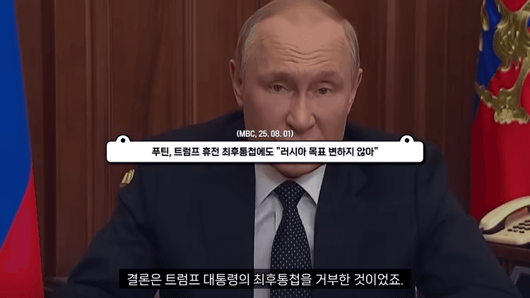 현지시각으로 8월 1일, 트럼프 대통령은 푸틴 대통령을 향해 ‘다루기 힘든 사람’이라고 표현하기도 했습니다. 키이우와 여러 도시에서 폭탄이 터져 사람들이 죽어가는 것을 봤을 때는, 대화로 잘 해결될 줄 알았는데 어쩌면 푸틴 대통령이 전부 가져가려 할지 모른다고 생각했다고 발언하기도 했습니다.