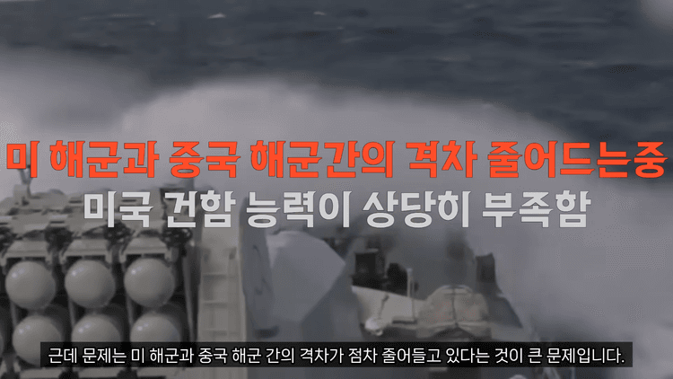 한편 중국 해군은 굉장히 빠른 속도로 성장하면서 미국 해군을 위협하고 있습니다. 미국 해군과 중국 해군 간의 격차는 점차 줄어들고 있다는 것이 현재 미국이 당면한 큰 문제입니다.