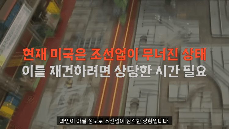 문제는 조선업 재건이 시뮬레이션 게임처럼 1-2년 만에 뚝딱 성공할 수 있는 사업이 아니라는 점입니다. 따라서 여러 부분에서 오랜 기간 투자가 이루어져야지 예전처럼 미국의 조선업이 다시 우뚝 설 수 있습니다.